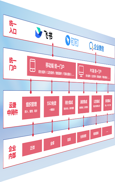 对协作平台提供支持服务,,,支持企业应用与协作平台对接,,,,包含组织同步、、、消息集成、、、待办集成等。。支持目前主流的协作平台:钉钉、、、、企微和飞书。。。。